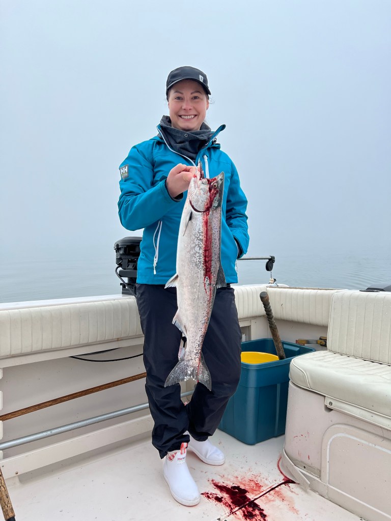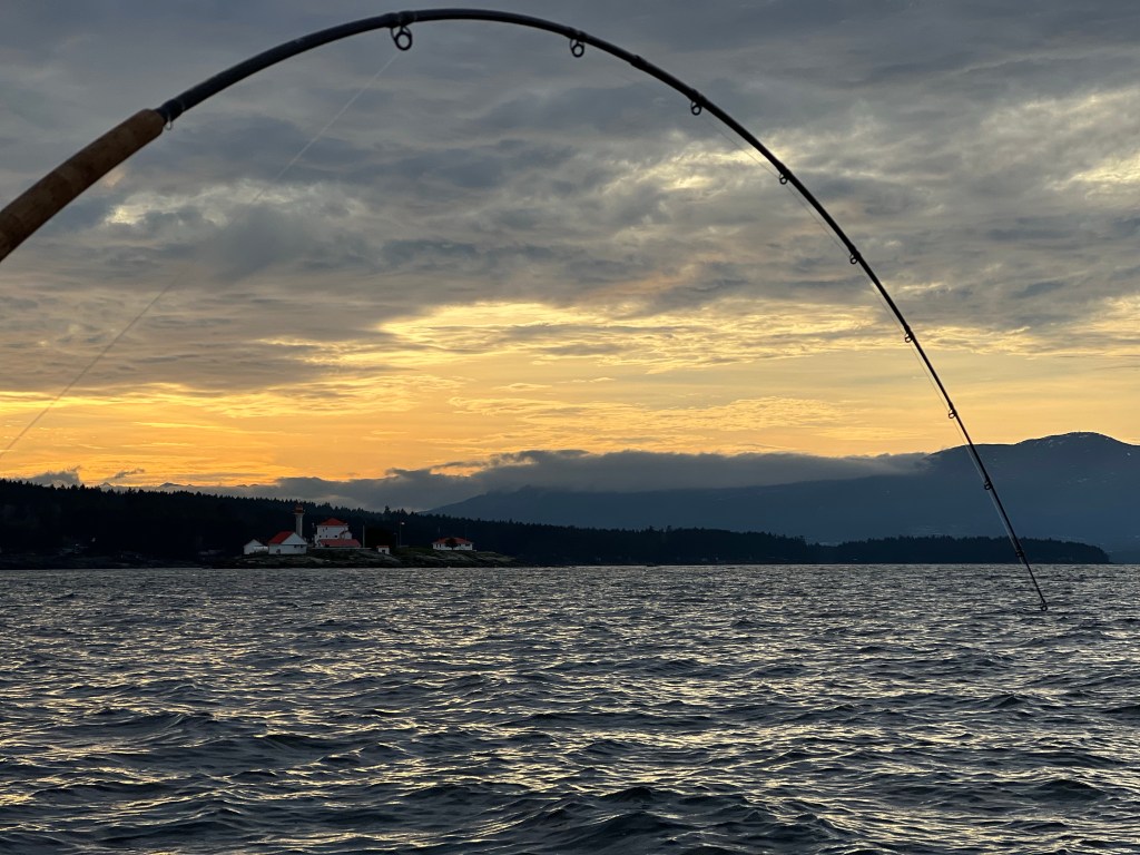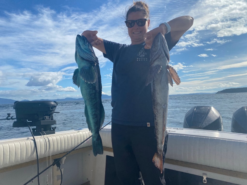 For this trip we were fortunate enough to get a weekend away without the kids. We took the ferry from Vancouver and stayed 2 nights on Galiano Island. Thanks to a recommendation from Jason, we had a fantastic stay at Galiano Oceanfront Inn & Spa. Jason picked us up each morning at the dock just next to the resort and we would head out to fish the mouth of the Fraser. This was the trip where I realized how much knowledge and experience Jason truly has. We made tight circles around the mouth and Jason blew me away with his knowledge of the fish, the tides, the current, and how it all works together. I’m sure you can argue most guides would know all of that but I’ve never had that experience in the past nor any other guided trip to this day. My husband landed a nice fish and then all of a sudden we were bombarded by the Resident Orcas. No exaggeration on this one, 40+ orcas made their way through the fleet of fishing boats. We just sat in awe as they passed through. Obviously at this point we called it quits on the salmon fishing. Lingcod was a viable option so we headed to the South Gulf Islands and landed a few ling. As much as fishermen don’t love to see Orcas, it was a highlight for this whale lover. We finished each long day of fishing with a nice meal at the Oceanfront Inn and a glass of wine on our balcony.