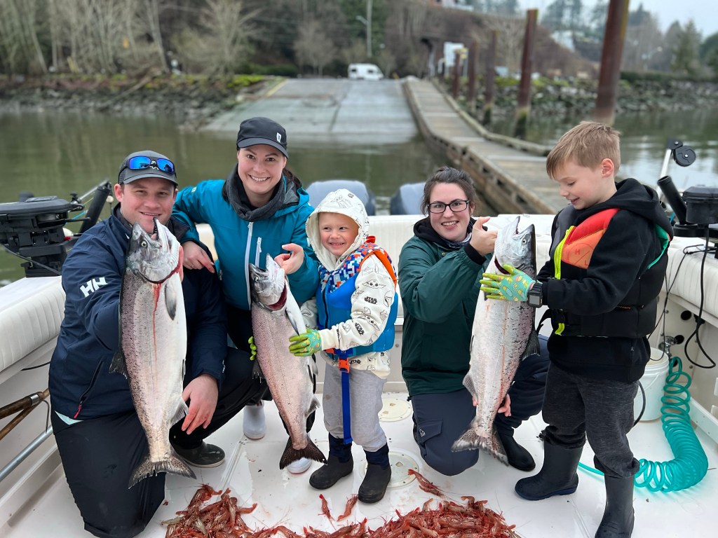 This was our first trip with Jason at Bon Chovy. As a birthday gift to my husband I surprised him with an 8 hour day of fishing for winter chinook. We landed some beauties and played an exhausting game of tug of war with a seal to land our last fish. We immediately connected with Jason and his amazing knowledge of the entire fish industry and laid back fishing style. We learned a lot that trip and knew we would be back as soon as we could.